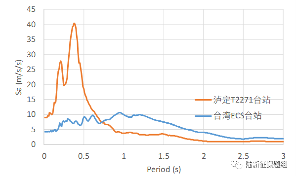 每次地震發(fā)生后,我們研究各種各樣的震害總有一種霧里看花的感覺,好像是這樣,又好像有些問(wèn)題沒(méi)有搞清楚。但是自從有了詳細(xì)的地面運(yùn)動(dòng)記錄后,很多問(wèn)題就變得容易理解多了。從圖1中不難看出,雖然兩次地震的震級(jí)很相近,但是實(shí)際地震動(dòng)的波形和反應(yīng)譜形狀卻差別非常顯著。對(duì)比T2271臺(tái)站和EYUL臺(tái)站記錄可以看出,EYUL臺(tái)站作為本次花蓮6.9級(jí)地震記錄到的最大地面加速度記錄,其地面運(yùn)動(dòng)的峰值、持時(shí),包括大部分周期段的反應(yīng)譜值,都顯著低于T2271臺(tái)站記錄。更值得研究的是對(duì)比T2271臺(tái)站和ECS臺(tái)站,雖然ECS臺(tái)站的地面峰值加速度不是很大,但是其1s左右周期段的反應(yīng)譜值非常高。因此,其對(duì)中長(zhǎng)周期的結(jié)構(gòu)破壞力尤其突出。如果我們將ECS臺(tái)站地震動(dòng)的反應(yīng)譜和《建筑抗震設(shè)計(jì)規(guī)范》GB50011的8度反應(yīng)譜放在一起對(duì)比(圖2),就可以看到ECS臺(tái)站記錄在1s周期左右的反應(yīng)譜值顯著高于8度罕遇地震反應(yīng)譜(高了約2.5倍)。這種地震可能會(huì)給中等周期結(jié)構(gòu)(多層、小高層建筑,常規(guī)橋梁等)造成非常嚴(yán)重的破壞。
