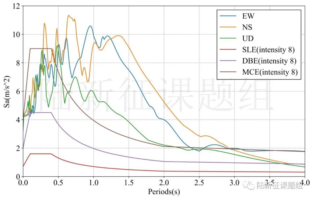圖2ECS臺(tái)站地震動(dòng)的反應(yīng)譜