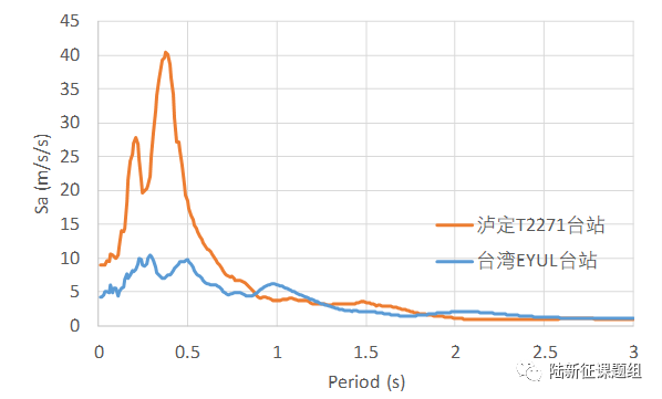 (b) 瀘定T2271臺(tái)站與臺(tái)灣EYUL臺(tái)站反應(yīng)譜對(duì)比(EW分量)