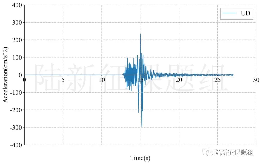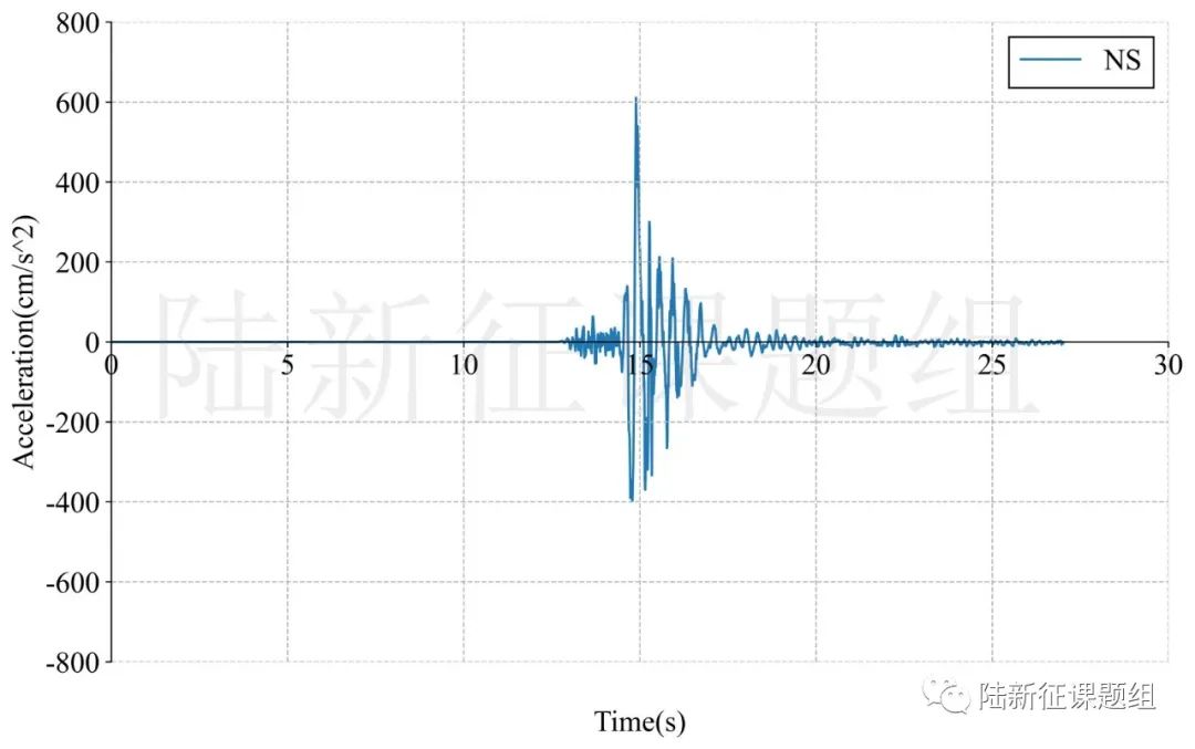 YN.ML003典型臺(tái)站位置北緯25.45度,東經(jīng)99.26度,記錄到水平向地震動(dòng)峰值加速度為684cm/s/s,豎直向地震動(dòng)峰值加速度為296cm/s/s。該地震動(dòng)及反應(yīng)譜如圖1、圖2所示。