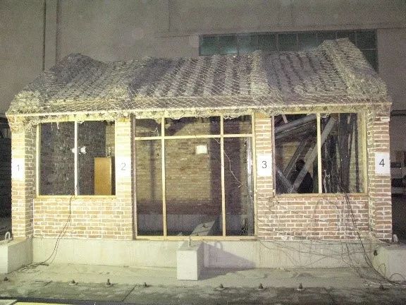 圖7單層三開間農(nóng)村住宅磚木結(jié)構(gòu)振動(dòng)臺(tái)試驗(yàn)