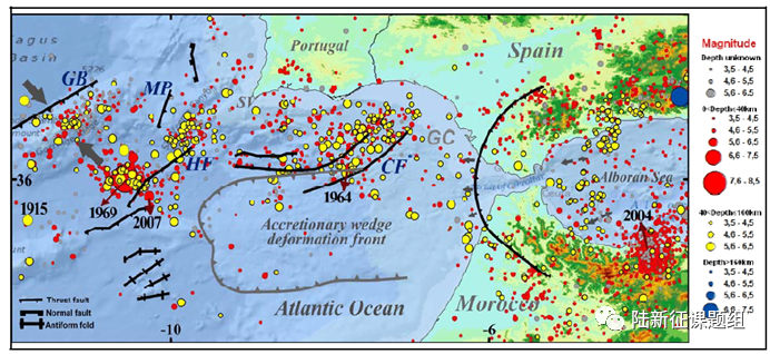 圖2摩洛哥周圍斷層和地震活動(dòng)情況