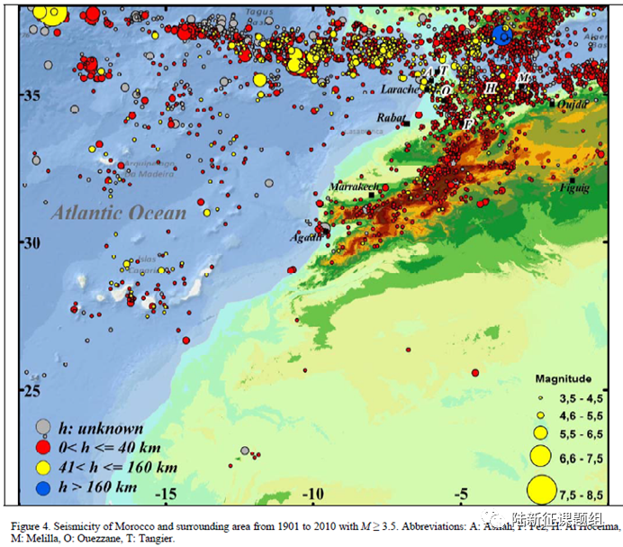 圖3摩洛哥1901-2010期間3.5級(jí)地震分布