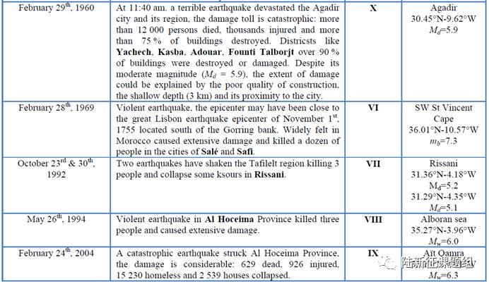 表1近年來(lái)摩洛哥部分重要地震
