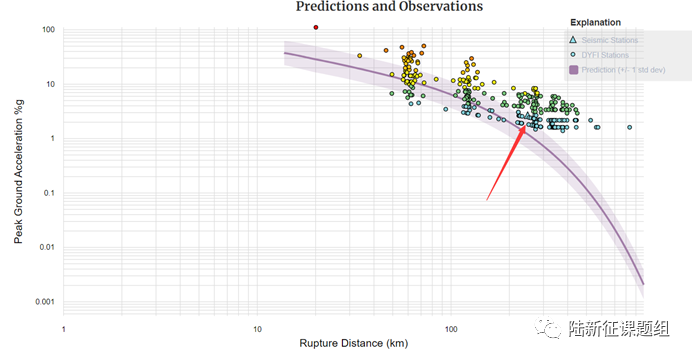圖6 美國(guó)USGS發(fā)布的本次地震動(dòng)強(qiáng)度情況,最近的儀器數(shù)據(jù)在100km以外(圖源:USGS)