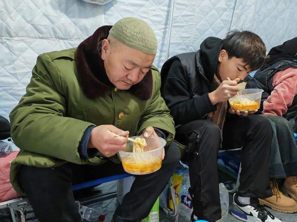 熱氣騰騰的牛肉面,填飽了大家的胃口,也驅(qū)散了一夜的寒氣。
